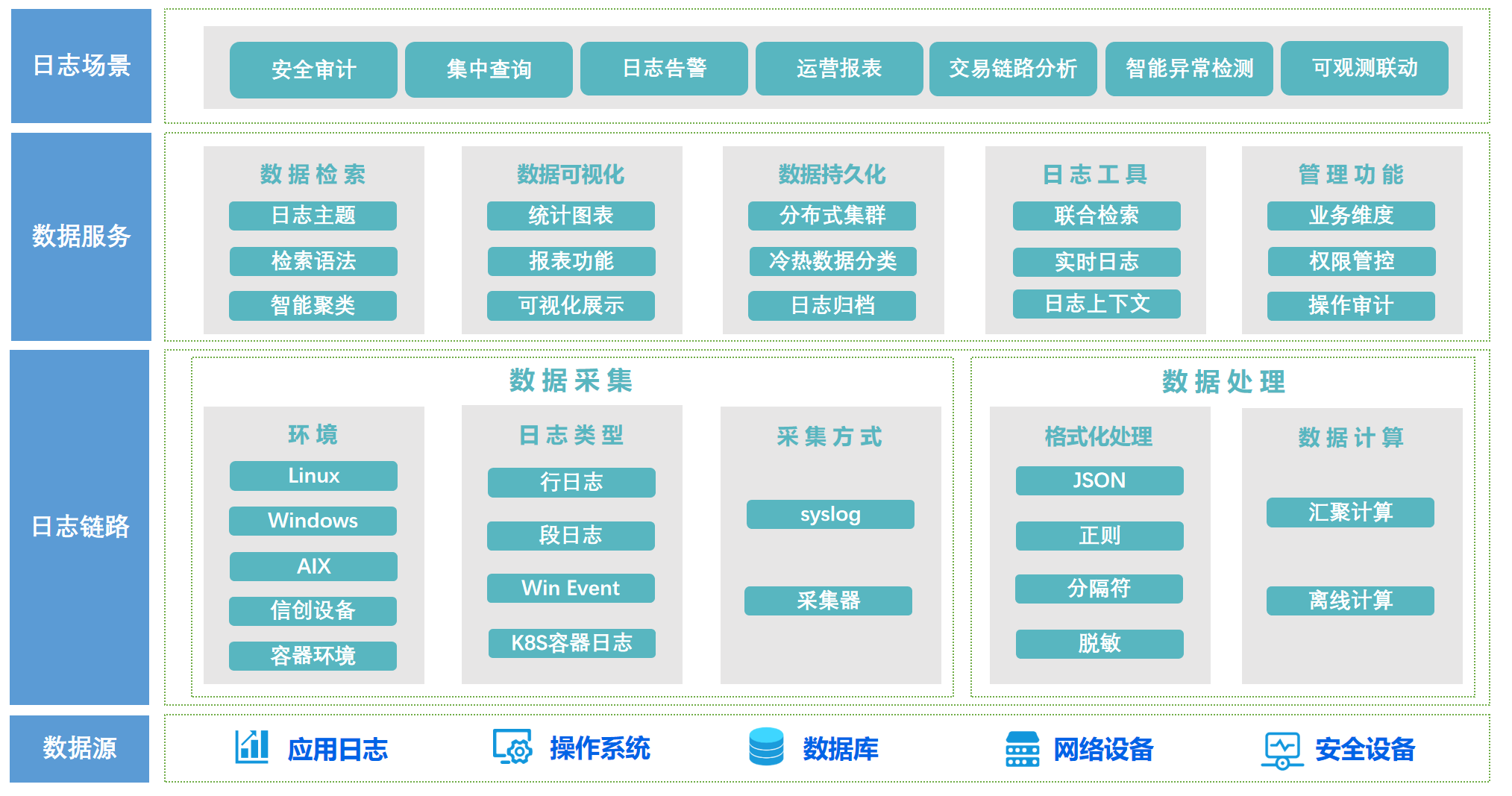 通过日志中心,企业可以便捷高效地接入不同设备源的各种实时日志数据。支持通过Agent采集操作系统、业务系统、中间件、数据库、网络设备、安全设备的日志数据。支持接入ElasticSearch、kafka中的日志数据。