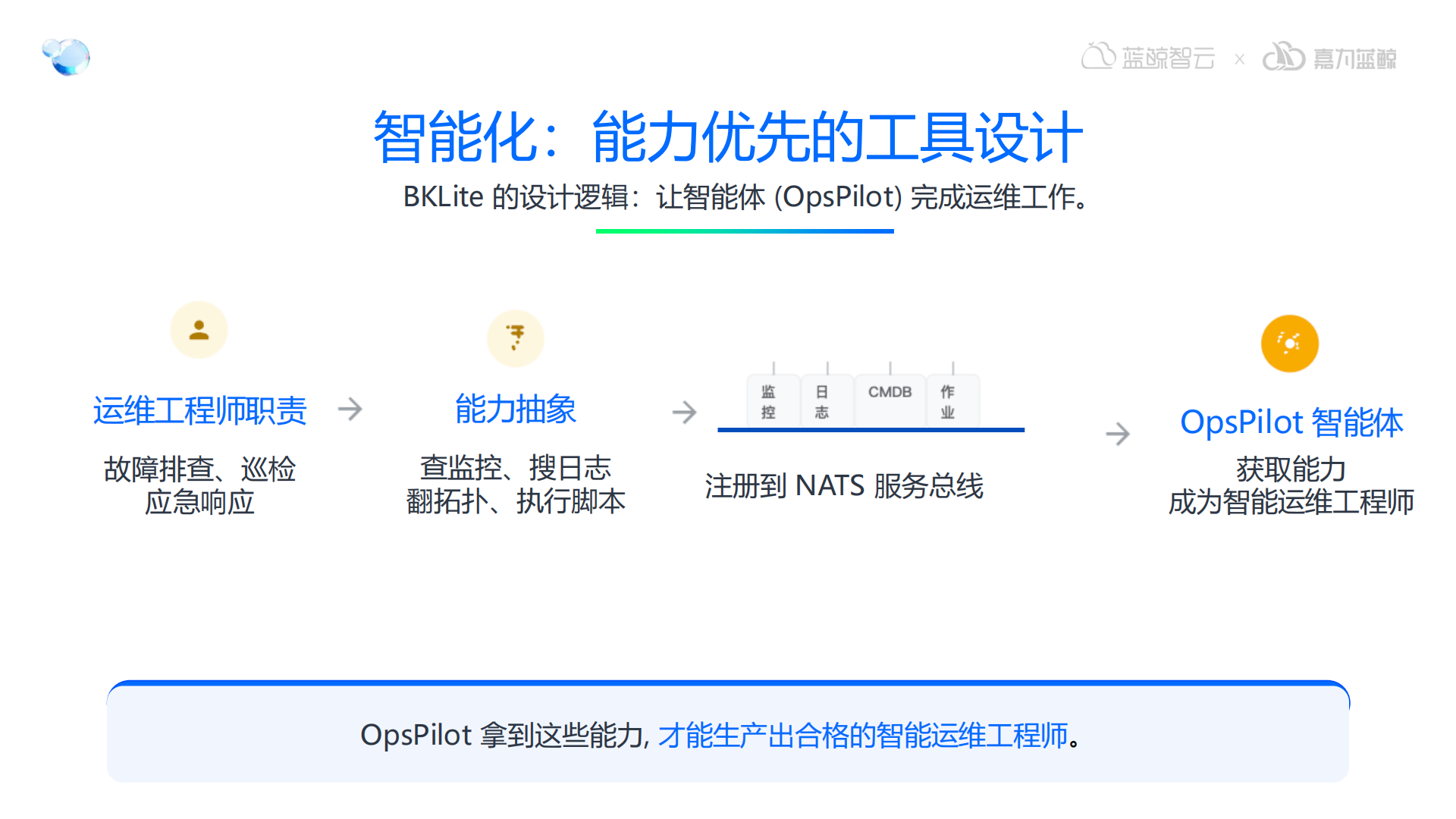 通过这种“能力抽象——服务总线集成——智能体赋能”的逻辑流,致力于让OpsPilot智能体结合自身工作职责和所获取的各项能力,掌握运维核心技能,实现智能运维,从而提升效率,降低人工介入,并保障系统稳定性。