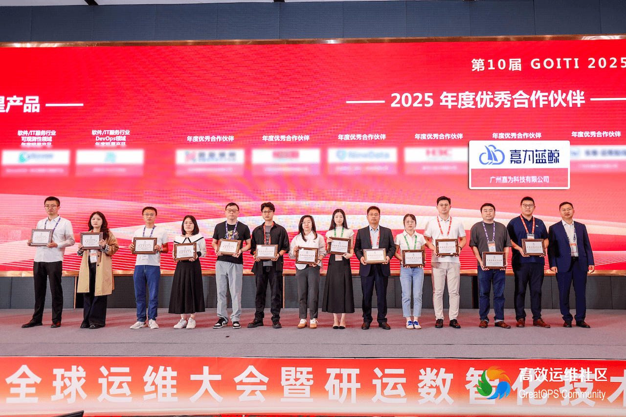 在大会荣誉表彰仪式上,嘉为蓝鲸凭借其在运维领域的深厚技术积累、卓越的客户服务能力以及与行业伙伴的深度协同成果,斩获“2025年度优秀合作伙伴”奖项。这一荣誉,是对嘉为蓝鲸实力的认可,更是对其长期以来深耕行业、坚守品质、赋能客户的高度肯定。