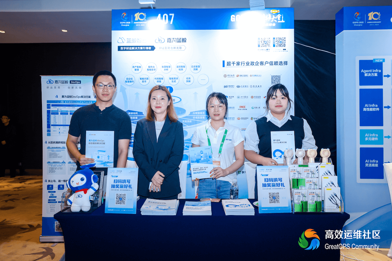 2025年10月17日至18日,第27届GOPS全球运维大会暨研运数智化技术峰会·上海站在上海召开。本次大会由高效运维社区和BizDevOps软件工厂联合主办,侧重大模型、DevOps、SRE、AIOps、BizDevOps、云原生及安全等热门技术领域。作为数字研运解决方案的引领者,嘉为蓝鲸受邀出席本次大会,与来自全球各地的运维技术精英、企业CIO、企业领袖以及知名厂商代表齐聚一堂,共同探讨运维领域的最新技术和最佳实践,探索AI运维未来!